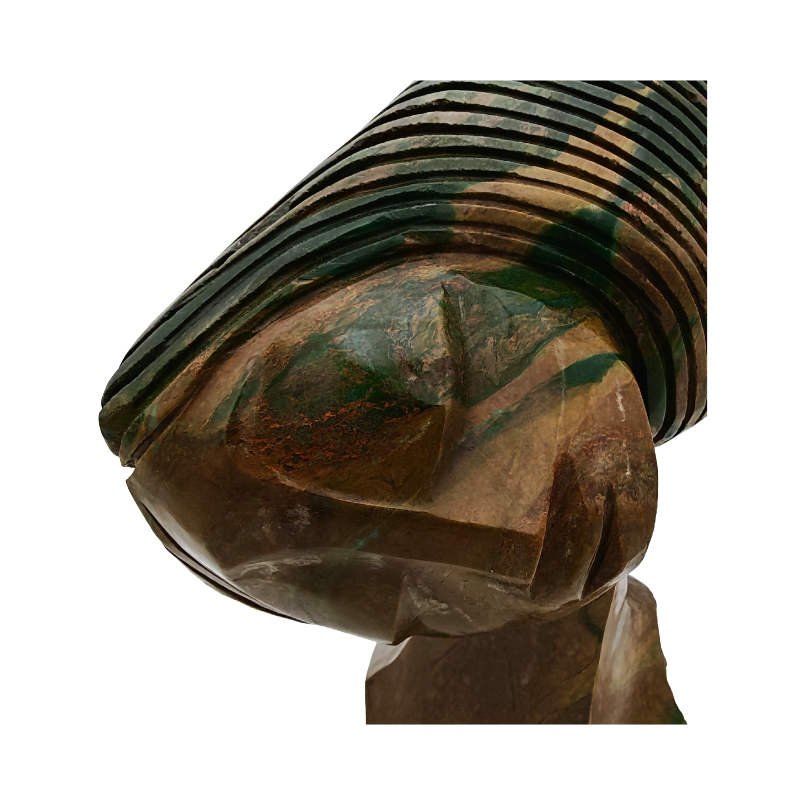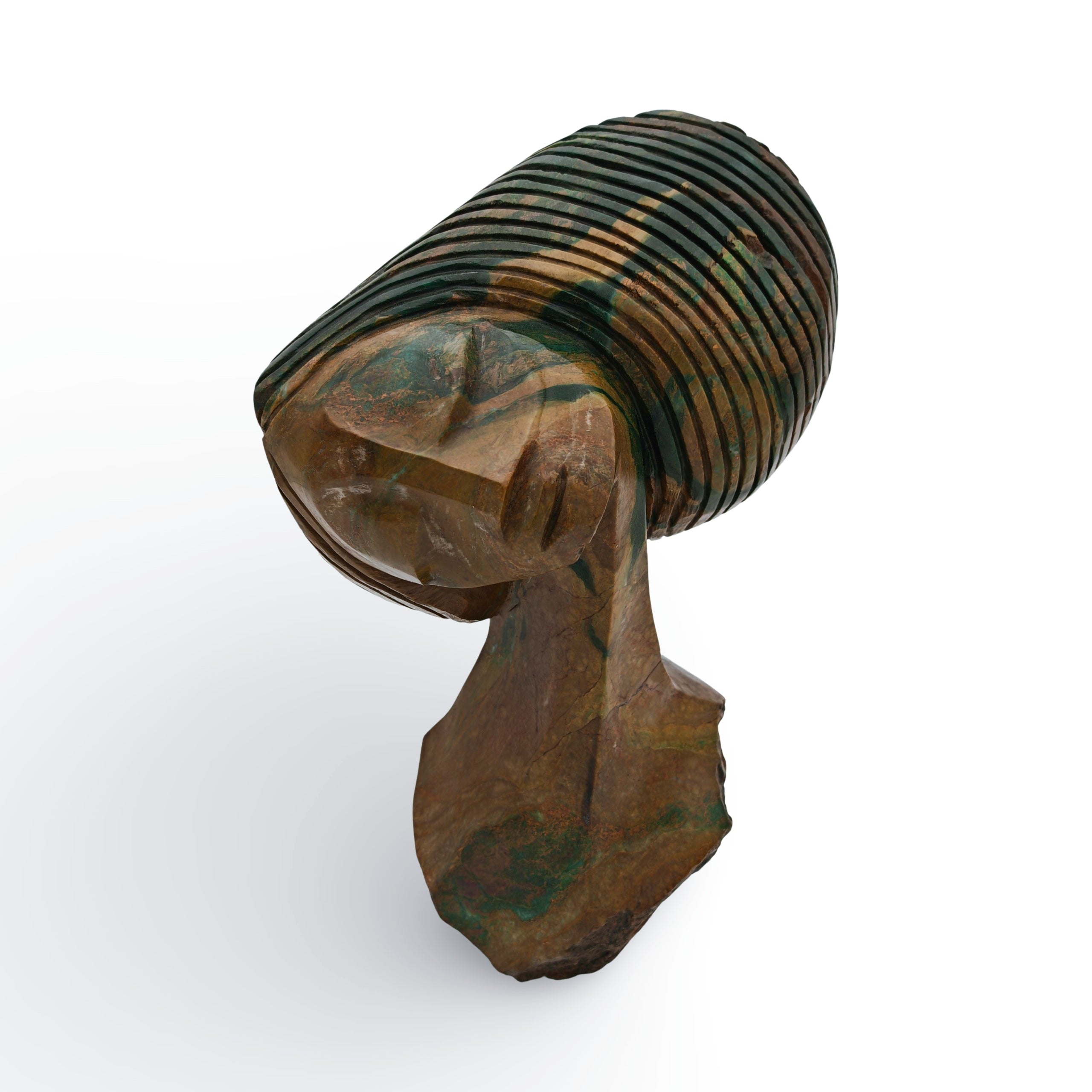 Bonjisis Skulpturen sind von einem emotionalen Frauenbild geprägt – Frauen mit klassischen Gesichtszügen, wallendem Haar und üppigen Formen. Seine sorgfältige Auswahl des Gesteins ist für die atemberaubend schönen Skulpturen von hoher Bedeutung. Die Farben des Steins, Kobalt, Violett, Malve und Gelb, verstärken die Schönheit der Skulpturen. Seine Arbeiten sind stark, robust und mit einer unmittelbaren visuellen Wirkung.